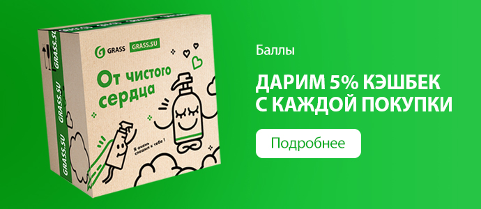 - Бонусы начисляются за покупки в интернет-магазине «GRASS.SU» в размере 5% от стоимости заказа